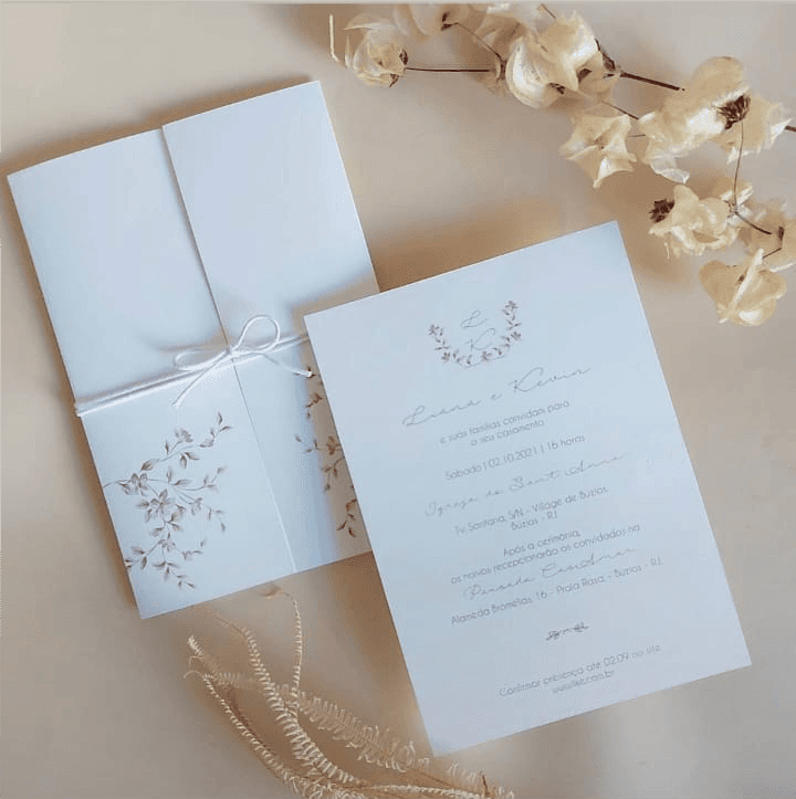 Convites de casamento que combinam o charme brasileiro com o estilo internacional, criando um design único para o seu grande dia.
